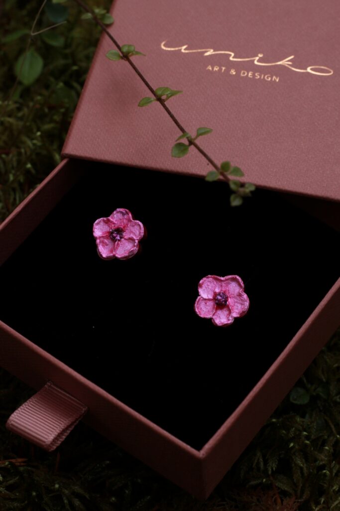Uusia alkuja -mallisto kuvaa luonnon heräämistä ja puhkeamista täyteen loistoonsa talven pimeän ja nukkuvan kauden jälkeen. Kirsikankukat valloittavat keväisin luonnossa värjäten puut vaaleanpunaisilla ja valkoisilla kukillaan – nämä korvakorut ilahduttaa ympäri vuoden. Pinnassa hento helmiäishohde.